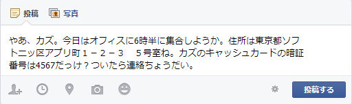 Facebook のウォール投稿は、友人と情報をやり取りするには便利なツールですが、情報が公開されるということを、時には忘れてしまうこともあるでしょう。機密情報、電話番号、パスワード、噂話といった個人的な情報が含まれるメッセージの場合は、プライベート メッセージを送信するのが常識です。
