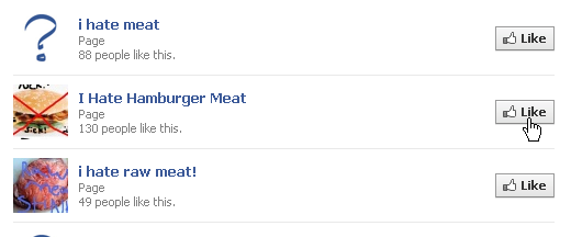 Facebook (またはインターネットのあらゆる場所) でいろいろなものを見るたびに、[いいね!] を押してしまいそうになります。何かのファンになる前に、[いいね!] を押す場合には、よく考えてからやりましょう。たとえば、”I hate…(最悪)” から始まるトピックや、一般論を述べている場合にも同様です。