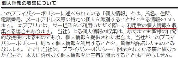 「個人情報を取集する」と利用規約にも明記。言い切ってますね。