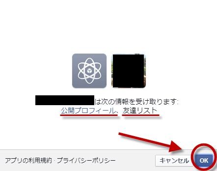 記事の続きを読むには「OK」をクリックとのことですが、軽い気持ちで「OK」してしまうと「プロフィール」と「友だちリスト」を謎のアプリに受け渡し、さらに怪しいアプリをインストールしてしまうことになります。一度アプリをインストールするとあなたのタイムラインに勝手に「オトリ記事」をシェアし、さらに感染が広まります。周りに迷惑をかけないためにも間違えてインストールしてしまわないように注意しましょう。