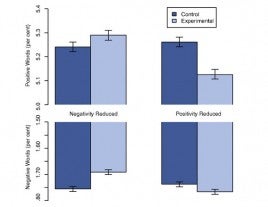 投稿は、LIWCという、投稿の全テキストを分析するツールを用いて分析され、ポジティブもしくはネガティブな感情を表現する言葉を検出しました(こちらから実際にテストもできます)。