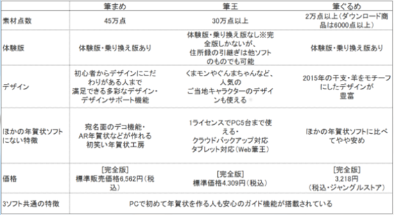 筆まめ、筆王、筆ぐるめ。2015年の年賀状はどれで作る?