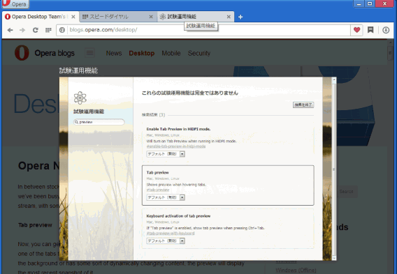 デスクトップ版Operaがバージョンアップ:タブプレビュー機能などが追加