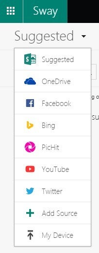 使い始めてすぐに感じるのはそのシンプルで手軽な操作性の魅力。Swayの画面内からクラウドストレージのOneDrive、Twitter、YouTube、Facebook、Bingなどにアクセスでき、ドラッグ&ドロップで動画や画像などのメディアをプレゼンに追加して組み合わせられます。