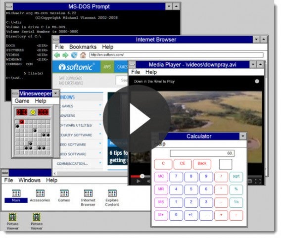 Windows 3.1 で利用できるエミュレーターはありませんが、www.michaelv.org から Windows 3.1 の Web シミュレーションが可能です。これは Windows 3.1 の操作感を非常によく捉えています。これのプログラマーは苦労を重ね、マインスイーパーや計算機などのプログラムも搭載ています。メディア プレーヤーには、YouTube から実際にビデオを取り込むといったちょっとしたからくりも含まれています。