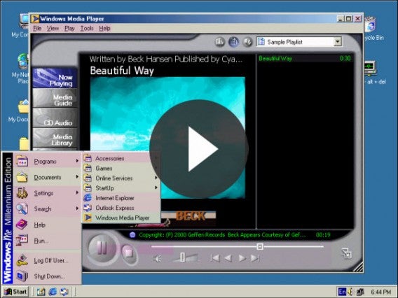 Windows 95 “シミュレーター” は、Windows 95 バージョンの不安定性をユーモアラスに表現しています。。そうはいっても、Windows 95 が優秀な Windows の指標となったことには違いないでしょう。32 ビット版プロセッサーで、マルチタスクの処理に初めて対応し、複数のプログラムの同時操作が可能となりました。しかしやはり、Windows 95 は非常に使用が困難であり、クラッシュが多く発生しました。