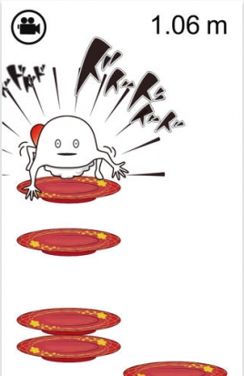 画面を左右に傾けると、ずーしーほっきーが傾いた方向にジャンプするので、うまく寿司皿にずーしーほっきーが乗っていけるようにコントロールしましょう。けっこう元気よくジャンプするので、慣れるまでコントロールが難しいかも…!?